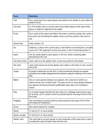 Cribbage Scoring & Terms