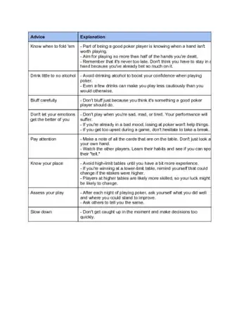 - Track your wins and losses if you start getting more serious about poker. This will help you figure out whether you are winning or losing in the long run.