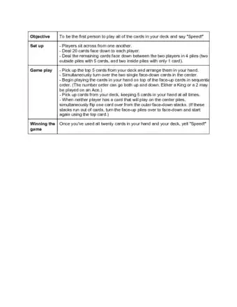 - Speed is traditionally played between two opponents. Three- and four-way speed are popular, but require additional decks of cards.