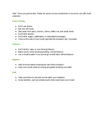 • Strictly avoid the use of tobacco/tobacco products and alcohol for 24 hours after tooth extraction.