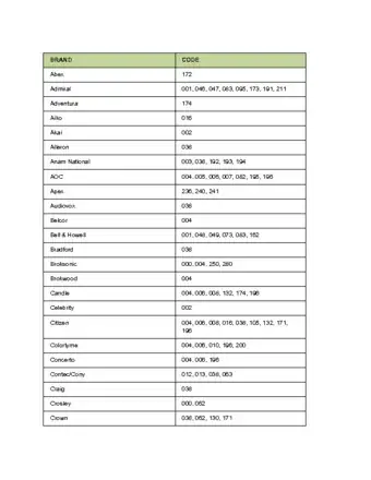 • You will need the Brand Code from the RCA Brand Code list. This list is included in the remote's documentation and a searchable database is available on the RCA Support site.[1]