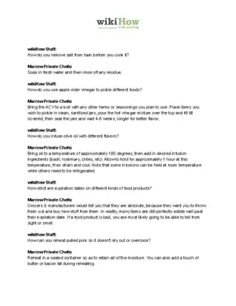 This article was co-authored by Marrow Private Chefs and by wikiHow staff writer, Luke Smith, MFA. Marrow Private Chefs are based in Santa Rosa Beach, Florida. It is a chefs’ collaborative comprised of an ever-growing number of chefs and culinary professionals. Though regionally influenced primarily by coastal, traditional southern, cajun, and creole styles and flavors, the chefs at Marrow have a solid background in all types of cuisine with over 75 years of combined cooking experience. This article has been viewed 1,932 times.