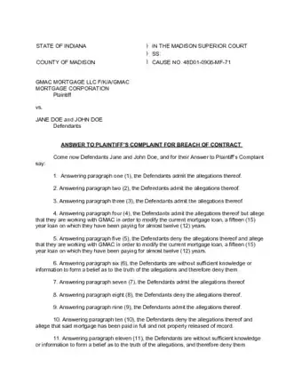 • Under the heading, center the words “Answer to Complaint for Breach of Contract” in all caps and bolded. Then, in the body of your motion, you should admit, deny, or claim lack of knowledge with respect to every allegation in the complaint. Be sure to number your paragraphs and respond to only one factual allegation per paragraph.