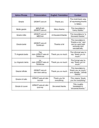 Whether you're traveling in Italy or just want to speak to an Italian friend in their native language, good manners are essential. Being able to say "thank you" goes a long way in expressing your humble gratefulness to someone for giving you something or helping you out. In Italian, the most basic way to say "thank you" is grazie (GRAHT-see-eh). However, there are plenty of other phrases you can use to enhance your expression.