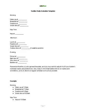 Setting a schedule for your toddler has many perks, from giving your toddler more confidence and stability to making your life easier as a parent.[1] The key to creating a good schedule for your toddler is a mix of structure, comfort, and fun. You should put the schedule into practice right away so your toddler gets used to their new routine and be willing to adjust the schedule as they get older to better fit their needs.