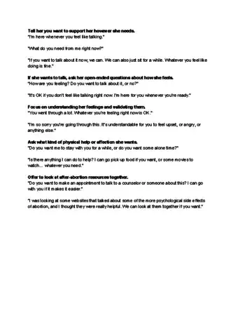- If your relationship feels strained after the abortion, talk about trying couples therapy together. Say, “We’re both going through a lot right now and I think talking to a professional could really help.”