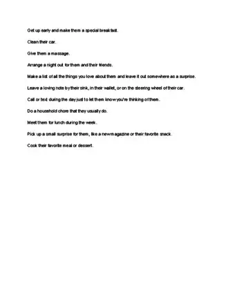 - You might have a conversation and specifically agree to do something kind for each other every day. Alternatively, you could just start on your own. Before long, your spouse will likely want to reciprocate.
