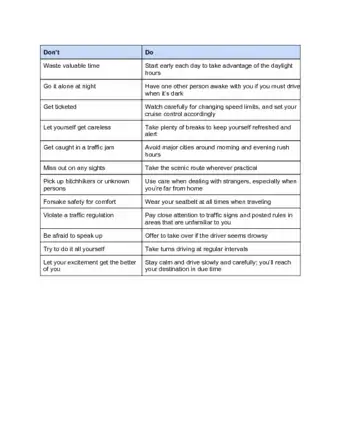 - Have one person sleep, and one person awake, if you happen to be traveling at night.