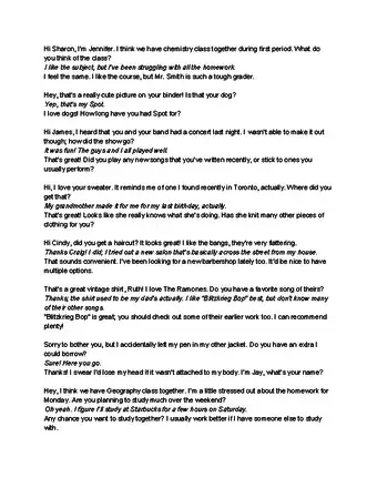 - For example, if you know that they’re involved in sports or music, you could plan to ask them, “Hey, how did the game last night go?” or “I heard that your band is doing really well! When's your next show?”