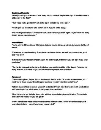 - If you have more advanced students in a class with beginners or intermediate-level students, you can either teach the whole class more advanced terms and steps, or you can go around the classroom occasionally to give individualized instructions to more advanced dancers.