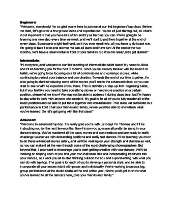 - If you don't know what level each of your students is on, take the time at the start of the class to ask each of them. You can also send out a survey before the class starts to find out more information about their dance backgrounds.