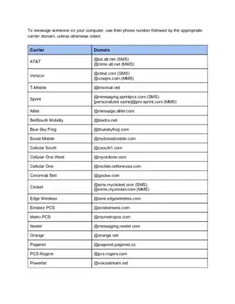 • AT&T: number@txt.att.net for a normal text message (SMS), or number@mms.att.net for a multimedia message (MMS)