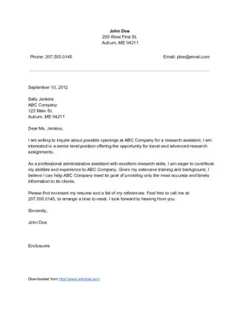5Learn the format for a business letter. All cover letters should be considered formal business letters. This applies whether you're sending an email or a hard copy letter. Learn this format and use it for all your cover letters.[3] Become familiar with the following format and be sure to use it when writing your letter.[4]