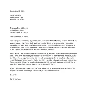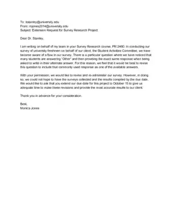 - Be aware of the time constraints facing the recipient as well. They may be under their own deadlines that will now need to be pushed back. For example, college professors are often required to submit midterm grades and schedule their paper deadlines accordingly.