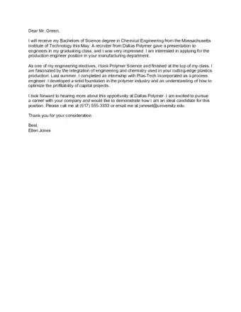 - For example, “Your company’s CEO (use his or her name here as well) expressed some truly innovative ideas during a recent TED Talk. I’d love to be a part of what the company is working on, and I’ve written to inquire about any openings on the Production team.”