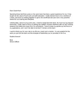 If you have been a member of a sports team for a while and you want to leave the team, it is best to provide your coach with a formal notice of your departure. Providing a written letter will give you an opportunity to communicate your appreciation for the coach and your team members. It is also a great way to leave on good terms and maintain positive relationships.