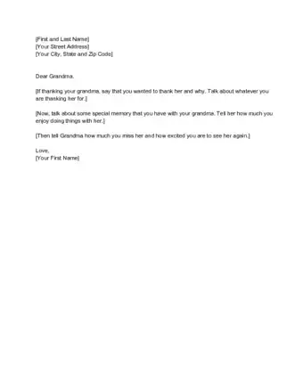 1Start with dear beloved granny/grandmother. Share her your memories of when she visited last time and say you miss her and that you're looking forward to seeing her again soon.