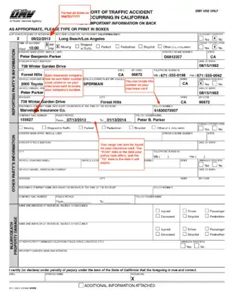 - Check to make sure that there are no injuries. If someone is hurt, call for help first before trying to get their information.
