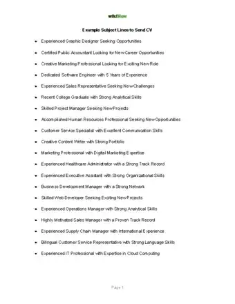 • For example, you might write "CV: Marco Diaz for Product Developer, 20 Years Experience."