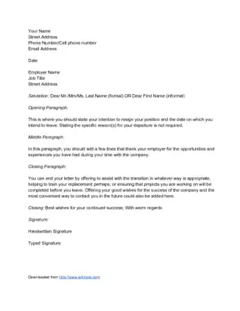 Set a positive tone. This letter will be the last document in your personnel folder, so it needs to leave a good impression. Even if you hate the job you are quitting and want nothing to do with anyone at the company ever again, you still need to leave the bridge intact instead of burning it down.[9]