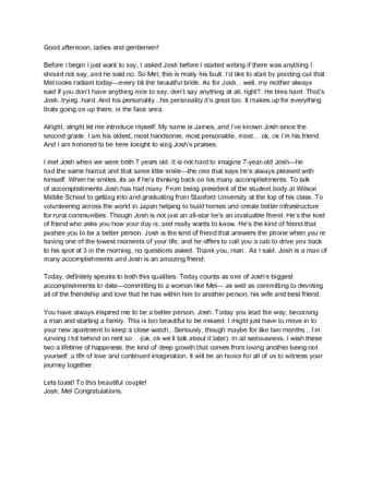 - Funny stories might include a funny story about the bride and groom's meeting, or an anecdote about one of them as a child.