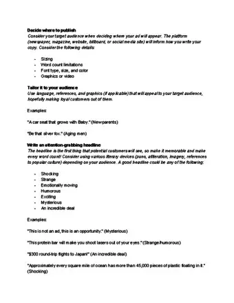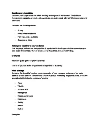 If you're in business you know that to attract customers and get results, you have to advertise. A great ad attracts attention, generates interest in your product, and leaves consumers with a strong desire to buy it. See Step 1 and beyond to learn the tenets of writing a compelling and effective ad.