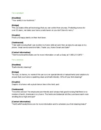 - Don't forget to include the name of your company and your product somewhere in your copy.