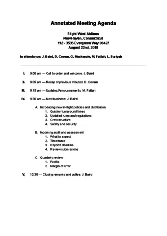 • You can also leave a space for agenda changes at the beginning.