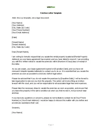 5Include the date you want the tenant to vacate the property. Be sure you are within the legal time frame for your jurisdiction. There are state laws that limit how quickly you can demand a tenant vacate the property. The time for eviction usually depends on a combination of the length of the original lease term and the reason for eviction.