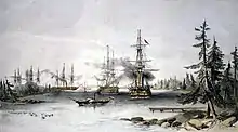 In 1832, Russia started to fortify the islands, with the great fortress of Bomarsund. In 1854, as part of the campaign in the Baltic during the Crimean War against Russia, a combined British and French force of warships and marines captured and destroyed the fortress during the Åland War. The 1856 Treaty of Paris demilitarised the entire Åland archipelago.[13]