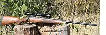 - M1941 Johnson rifle, feeding from a 10-round internal rotary magazine, loading from stripper clips