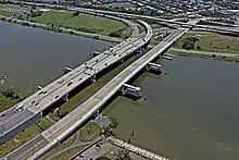 The 11th Street Bridges are a complex of three bridges across the Anacostia River in Washington, D.C., United States. The bridges convey Interstate 695 across the Anacostia to its southern terminus at Interstate 295 and DC 295.[1] The bridges also connect the neighborhood of Anacostia with the rest of the city of Washington.[1]