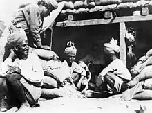 ![]() A depiction of a Lance Naik of the 123rd Outram's Rifles (fourth from right) amongst other British Indian Army troops. | |