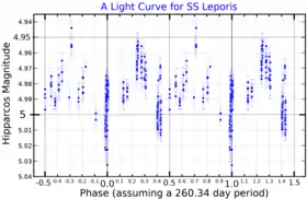 - "SS Lep, database entry". The combined table of GCVS Vols I-III and NL 67-78 with improved coordinates, General Catalogue of Variable Stars. Moscow, Russia: Sternberg Astronomical Institute. Archived from the original on June 20, 2017. Retrieved September 9, 2009.