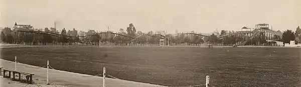 ![]() ![]() Photo of the Adelaide Oval grandstands in 1889 by photographer Ernest Gall. | ||||||||||||||||