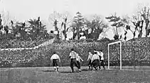 The second replay was at the former Fallowfield Stadium in Manchester. This match had to be abandoned at half-time because of a crush in the crowd.[12]