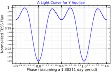 18 Aquilae (abbreviated 18 Aql) is a triple star[9] system in the constellation of Aquila. 18 Aquilae is the Flamsteed designation; it also bears the variable star designation Y Aquilae. It has an apparent visual magnitude of 5.07. The distance to this system can be estimated from the annual parallax shift of 6.43 mas, yielding a value of around 510 light-years (160 parsecs) away from Earth.