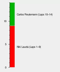With Emerson Fittipaldi's McLaren M23 retiring with suspension damage, Lauda was able to expand his points lead to 17 points with Reutemann moving back into second place.