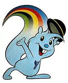 The mascot of the 1987 Summer Universiade is a squirrel, named "Zagi" and created by Nedjeljko Dragić.[1] It is a resident of Zagreb's parks, amiable and always in a good mood. Its nonchalance and gaiety are but a cover for diligence. Always on the move and reaching for the seemingly impossible, the squirrel embodies the dynamism of athletic endeavour. Its origin is shown by the little black hat, characteristic of the folk costumes in the region of Zagreb.[2]