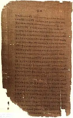 ![]() Page 78 of Papyrus 46 (c. AD 200) showing 1 Corinthians 2:3–11. P. Mich Inv. 6238. University of Michigan. | |