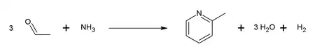 Another method involves the condensation of acetone and acrylonitrile to give 5-oxohexanenitrile, which then cyclizes to give 2-picoline. Approximately 8000 t/a was produced worldwide in 1989.[1]
