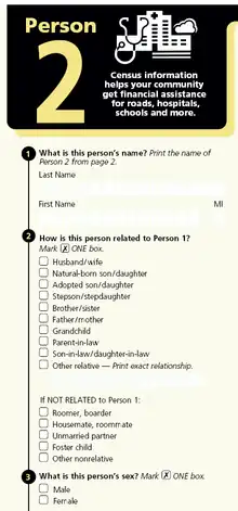 - "Census 2000 Long Form Questionnaire" (PDF). Archived from the original on October 15, 2010. Retrieved April 25, 2011.
