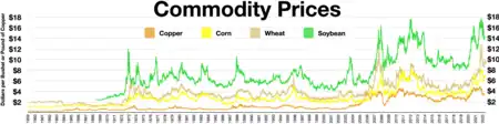 Foreign exchange impacts commodities prices and so does money supply: the advent of a crisis will pull commodities prices down.[5]