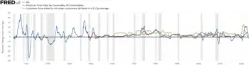 Hence, in the case of an economic crisis commodities prices follow the trends in exchange rate (coupled) and its prices decrease in case there are downward trends of diminishing money supply.[5]
