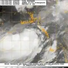 ![]() Satellite image of the cyclone offshore Myanmar | |