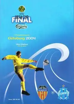 The 2004 UEFA Cup Final was an association football match that took place on 19 May 2004 at Ullevi in Gothenburg, Sweden, contested between Spanish side Valencia and French side Olympique de Marseille. Valencia won the match 2–0, with goals from Vicente and Mista. This was the fourth major European trophy won by Valencia.