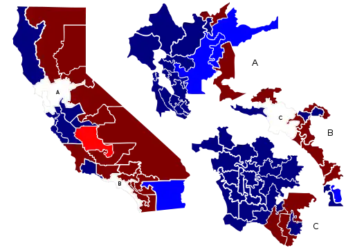 The California state elections, November 2008 were held on November 4, 2008 throughout California. Among the elections taking place were those for the office of President of the United States, all the seats of California's delegation to the House of Representatives, all of the seats of the State Assembly, and all of the odd-numbered seats of the State Senate. Twelve propositions also appeared on the ballot. Numerous local elections also took place throughout the state.[2][3]