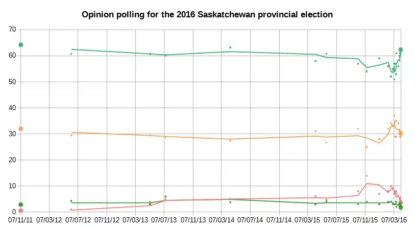 - Grenier, Éric. "Poll Tracker: 2016 Saskatchewan provincial election". CBC Saskatchewan. CBC News. Archived from the original on 12 April 2016. Retrieved 10 April 2016.