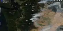 ![]() Wildfires burning September 3, 2017 (satellite image). Visible in the Cascades, north to south: Diamond Creek Fire, Jolly Mountain Fire, Norse Peak Fire | |