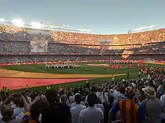 The 2019 Copa del Rey final was a football match played on 25 May 2019 that decided the winner of the 2018–19 Copa del Rey, the 117th edition of Spain's primary football cup (including two seasons where two rival editions were played). The match was played at the Estadio Benito Villamarín in Seville between Barcelona and Valencia.[1]